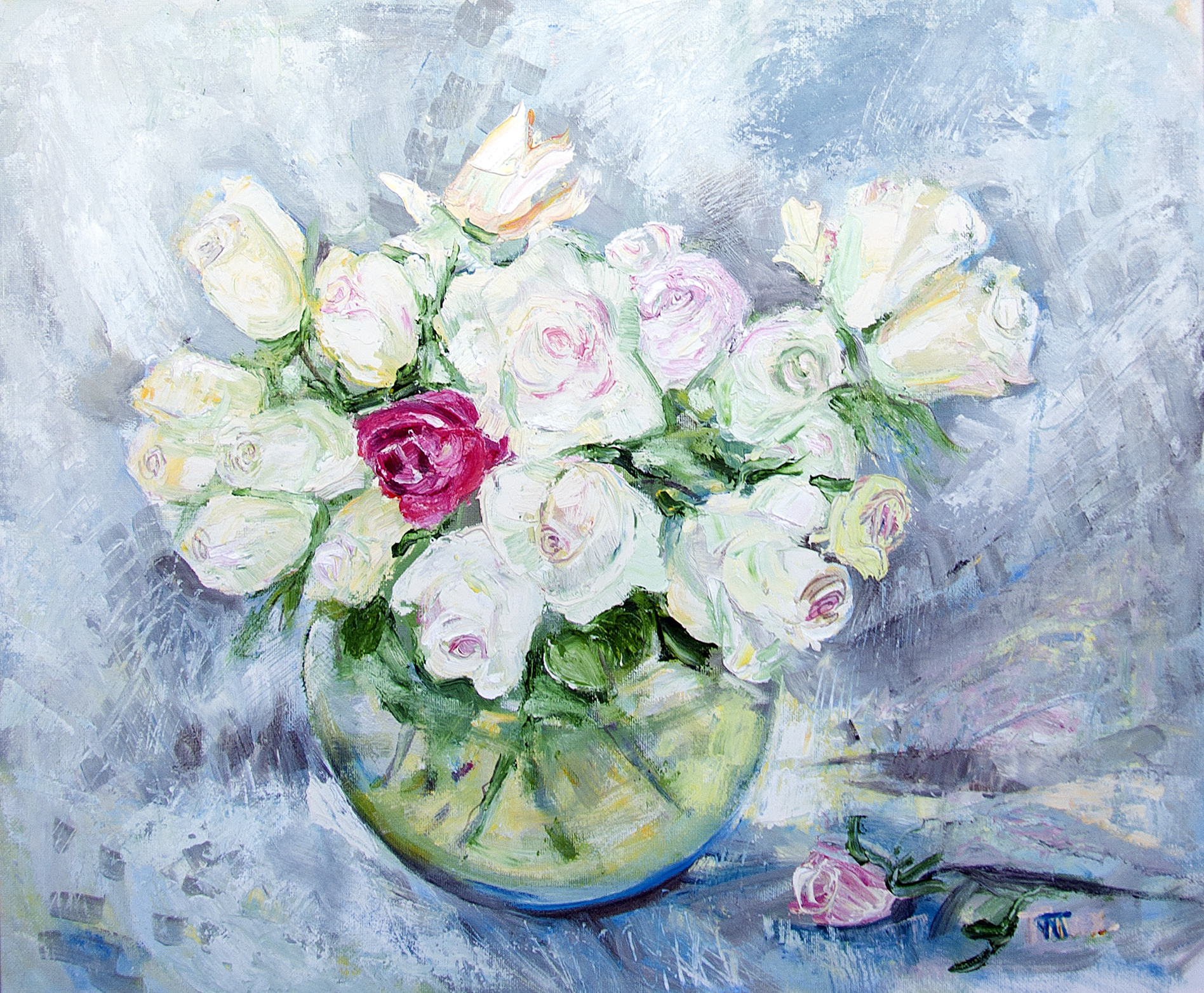 Розы в круглой вазе